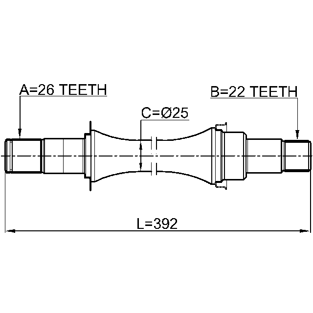 AXLE HALF SHAFT RIGHT 26X397X22