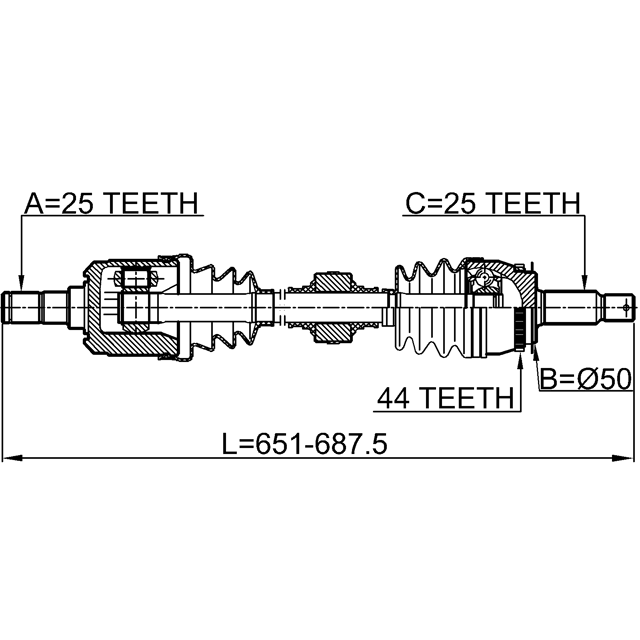FRONT CV AXLE SHAFT LEFT 25X678X25
