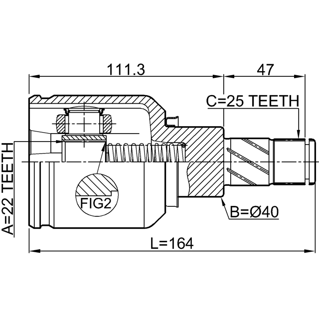 INNER CV JOINT LEFT 22X39.7X25