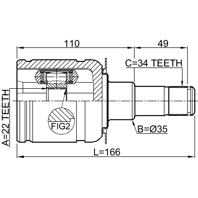 INNER CV JOINT RIGHT 22X35X34