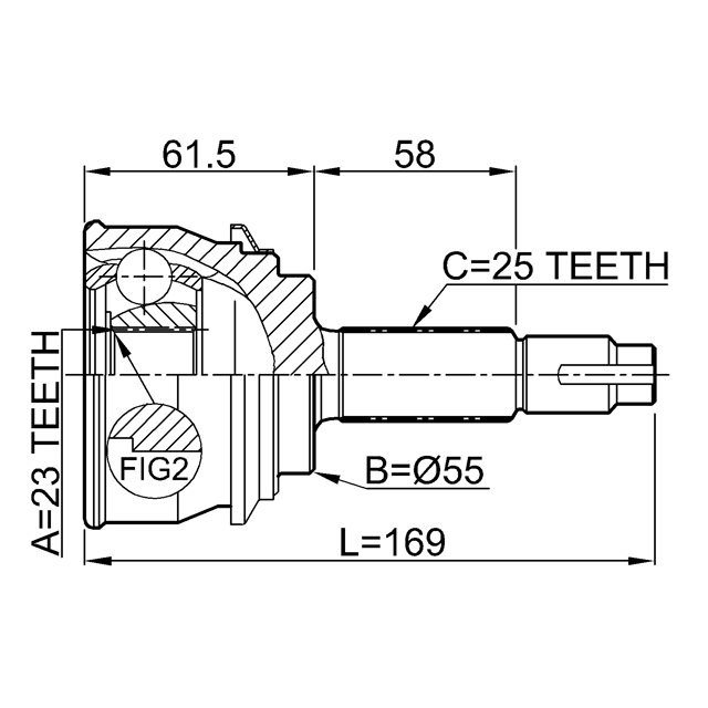 OUTER CV JOINT 23X55X25