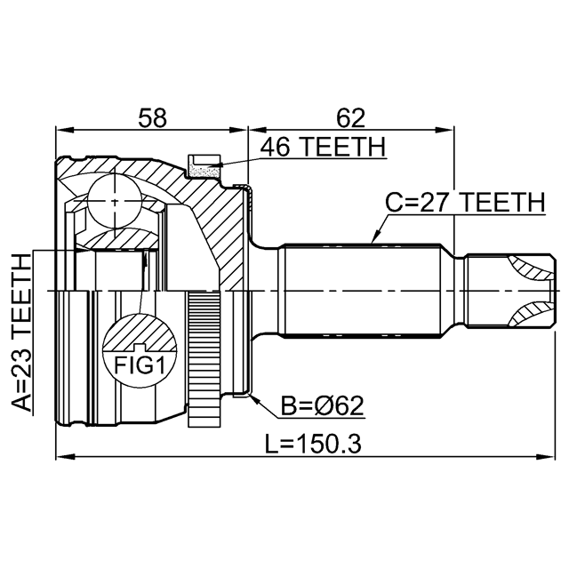 OUTER CV JOINT 23X64.5X27