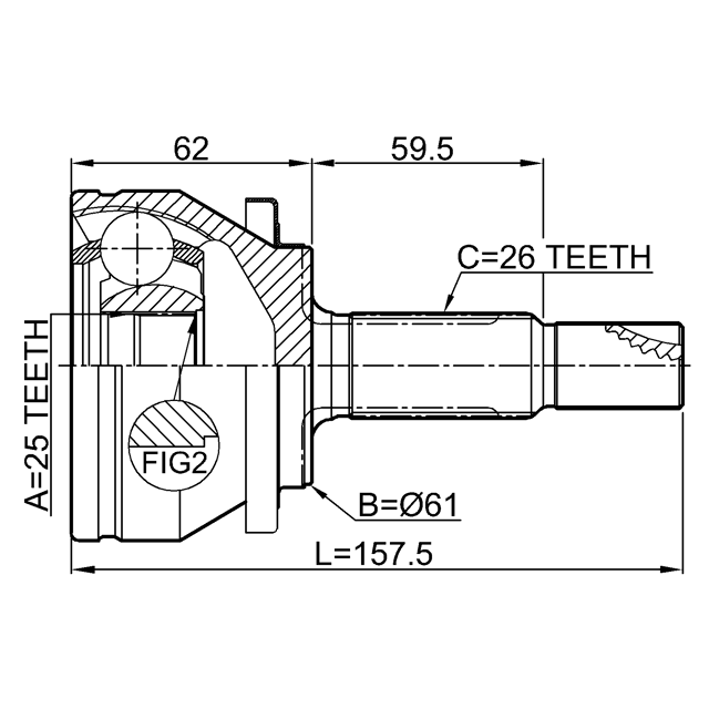 OUTER CV JOINT 25X61X26