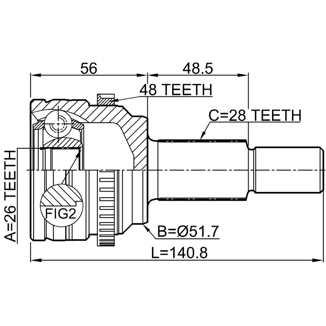 OUTER CV JOINT REAR 26X50X28